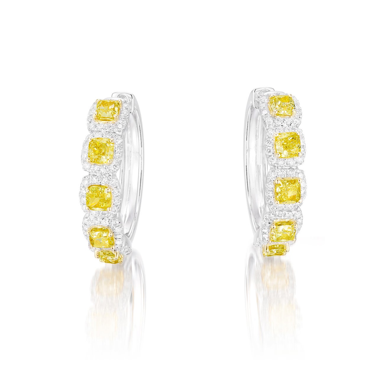 - Cushion-shaped yellow diamonds, 3.46 carats total