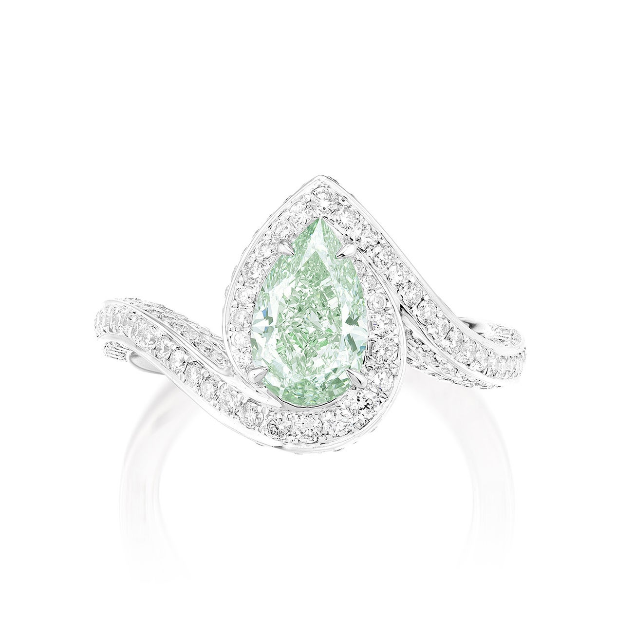 - One pear-shaped Fancy Intense Green diamond, 1.26 carats