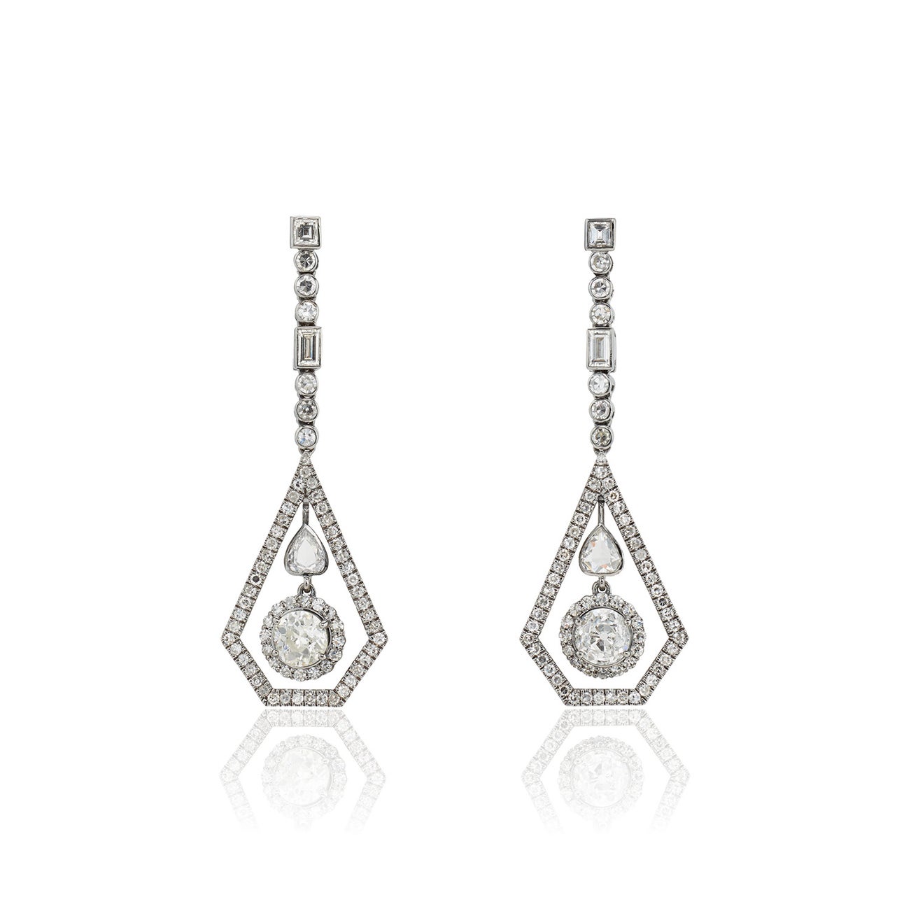 Pear-shaped rose-cut, baguette-cut and single-cut diamonds, total approximately 1.90 cts.