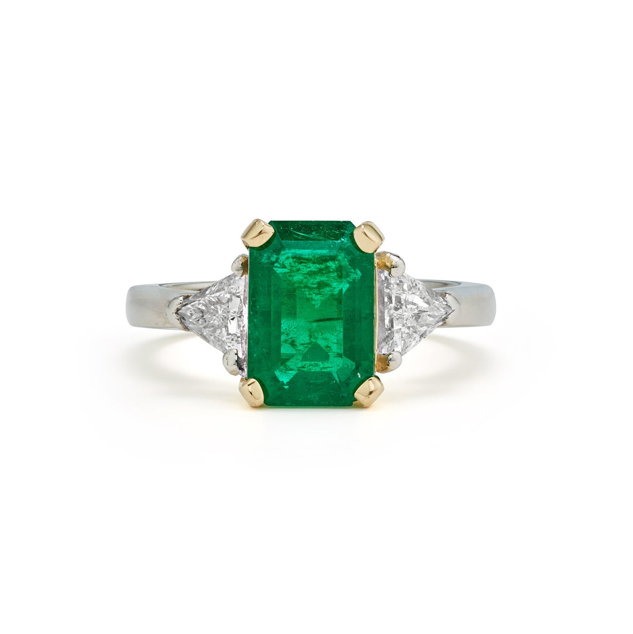 An Emerald, Diamond, Platinum, and Gold Ring