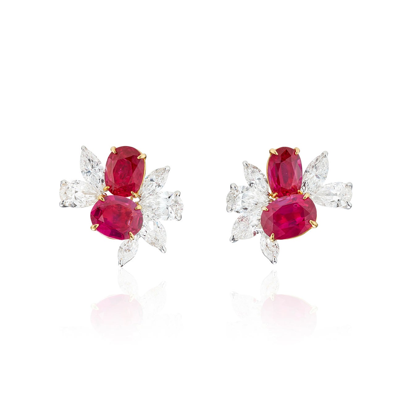 A Pair of Ruby, Diamond, and Bi-Colored Gold Earrings