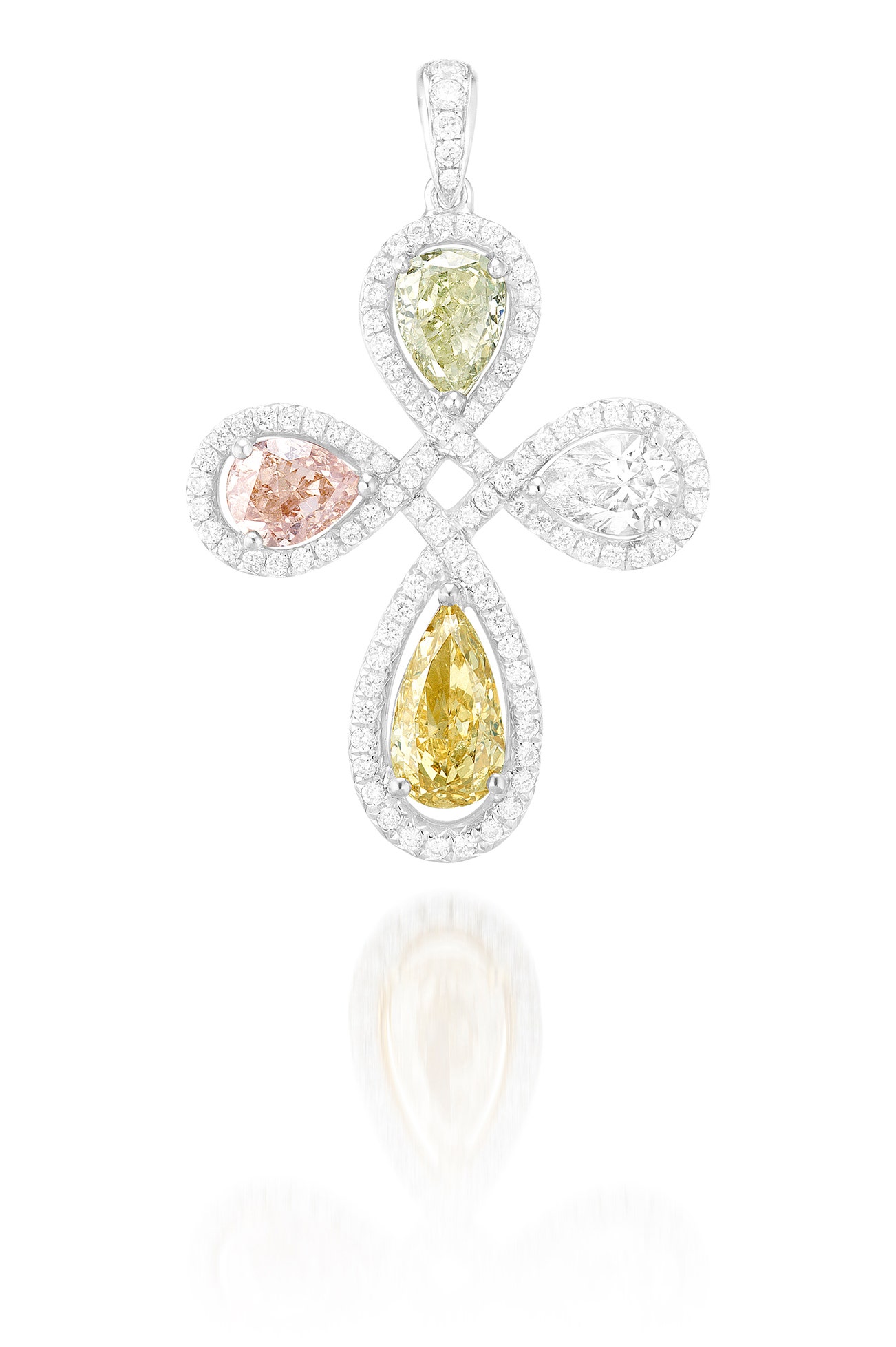 A Coloured Diamond and Diamond Pendant Necklace
