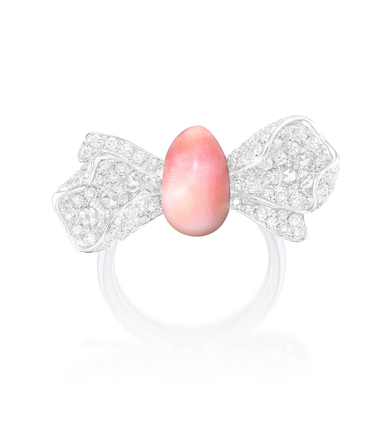 A Conch Pearl and Diamond 'Ribbon Bow' Ring