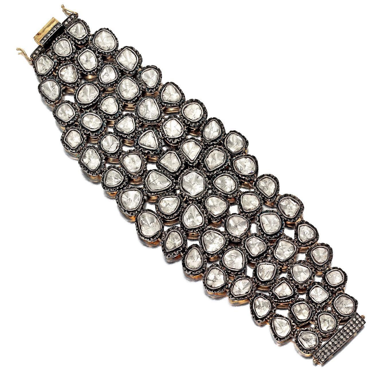 Set with portrait- and single-cut diamonds,