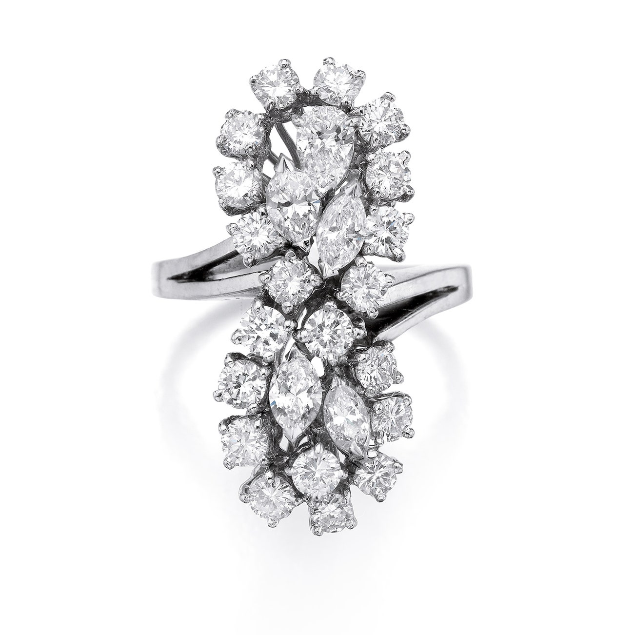 Set with brilliant-cut, pear- and marquise-shaped diamonds,