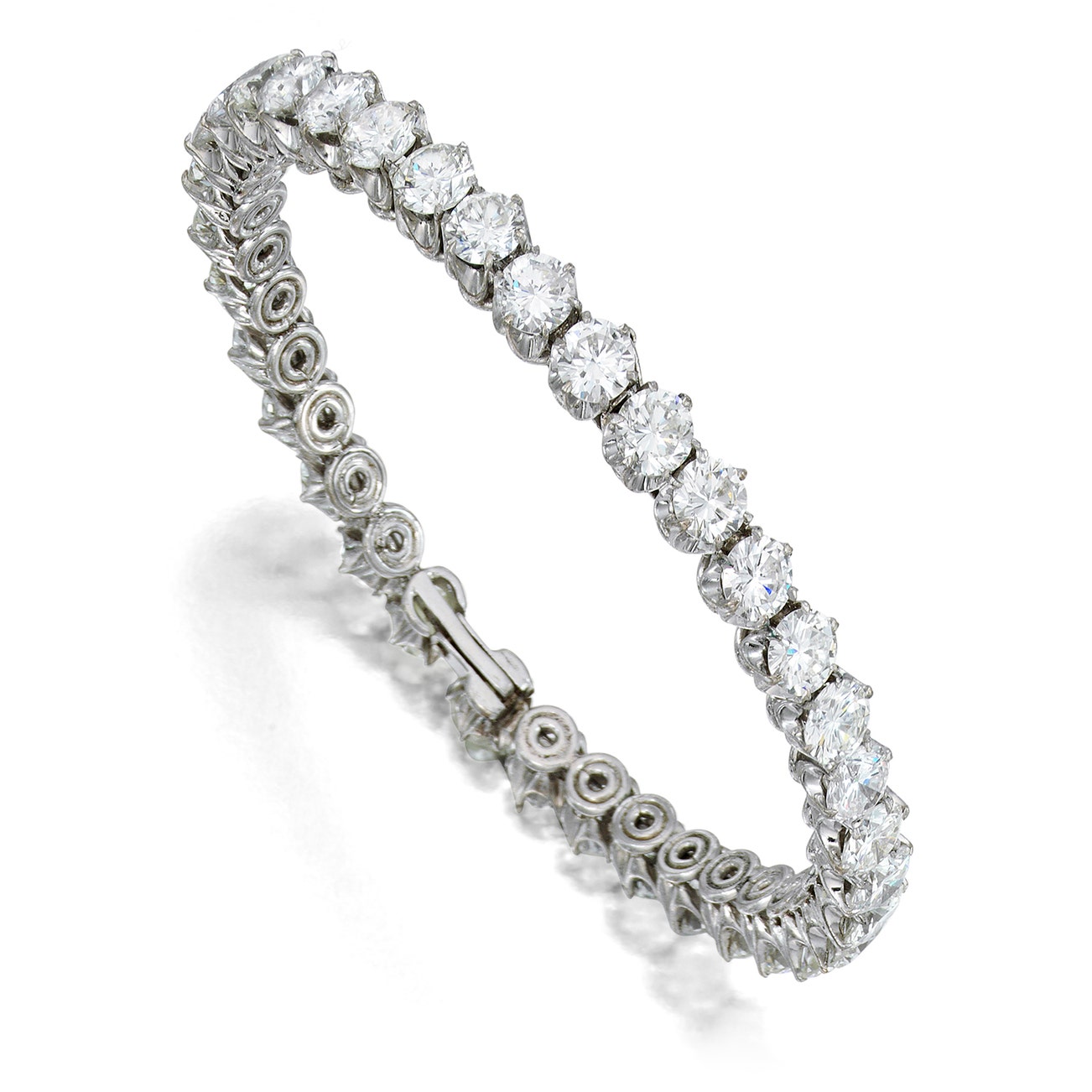 mounted in 10K white gold, inner circumference approximately 6 1/2 inches.