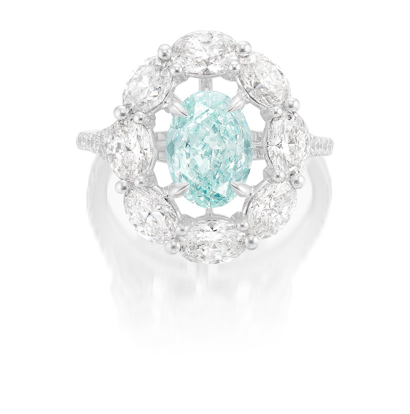 Fancy Green-Blue Diamond and Diamond Ring/ Pendant