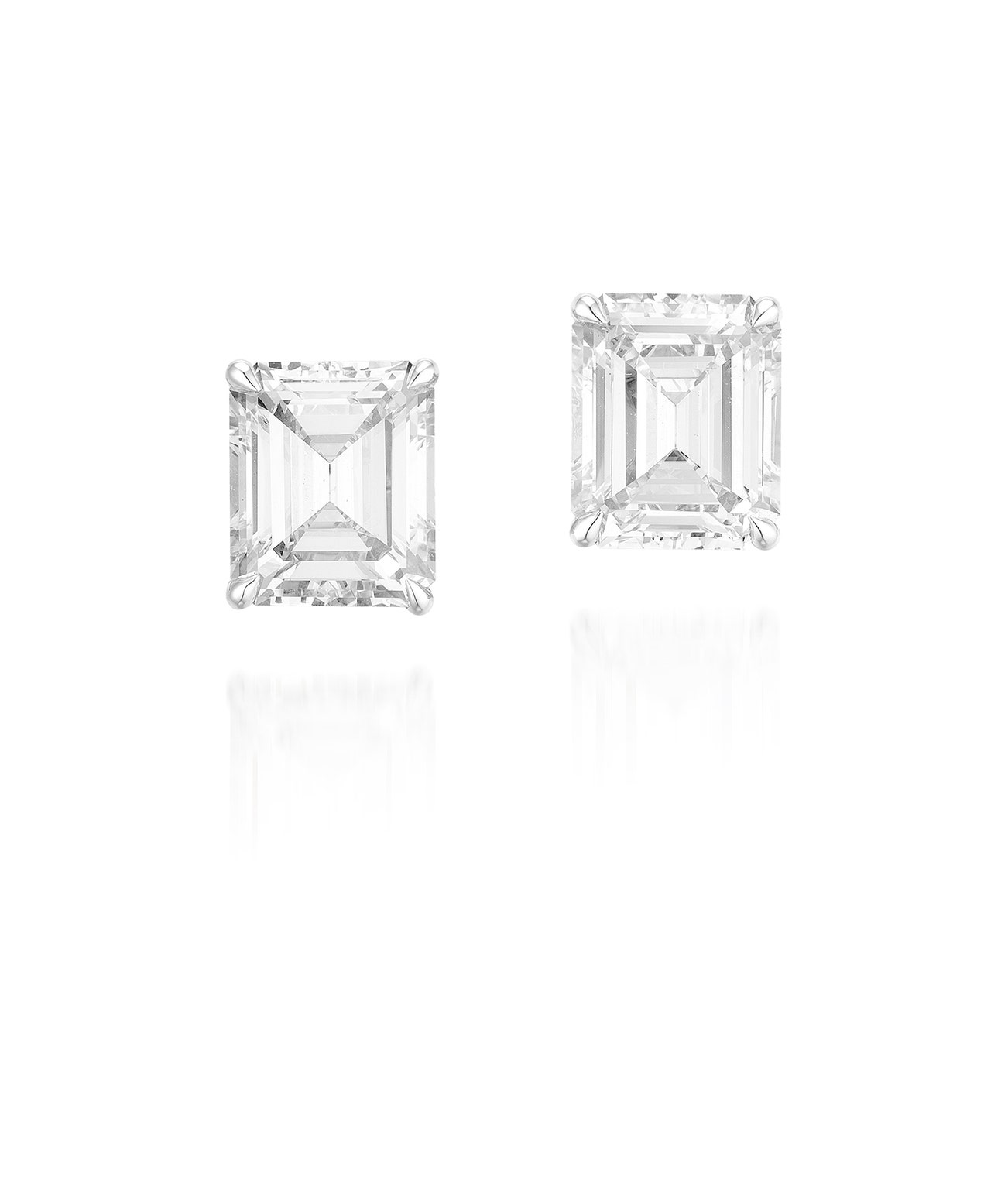 Each set with an emerald-cut diamond weighing 2.08 and 2.23 carats respectively, mounted in white gold, post and butterfly fittings.
