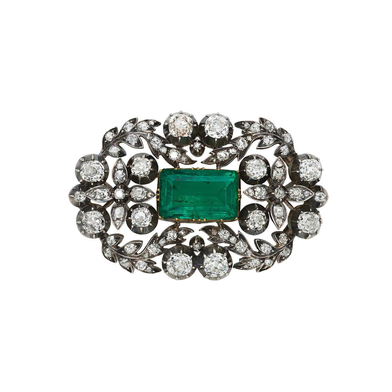 Antique Emerald and Diamond Brooch