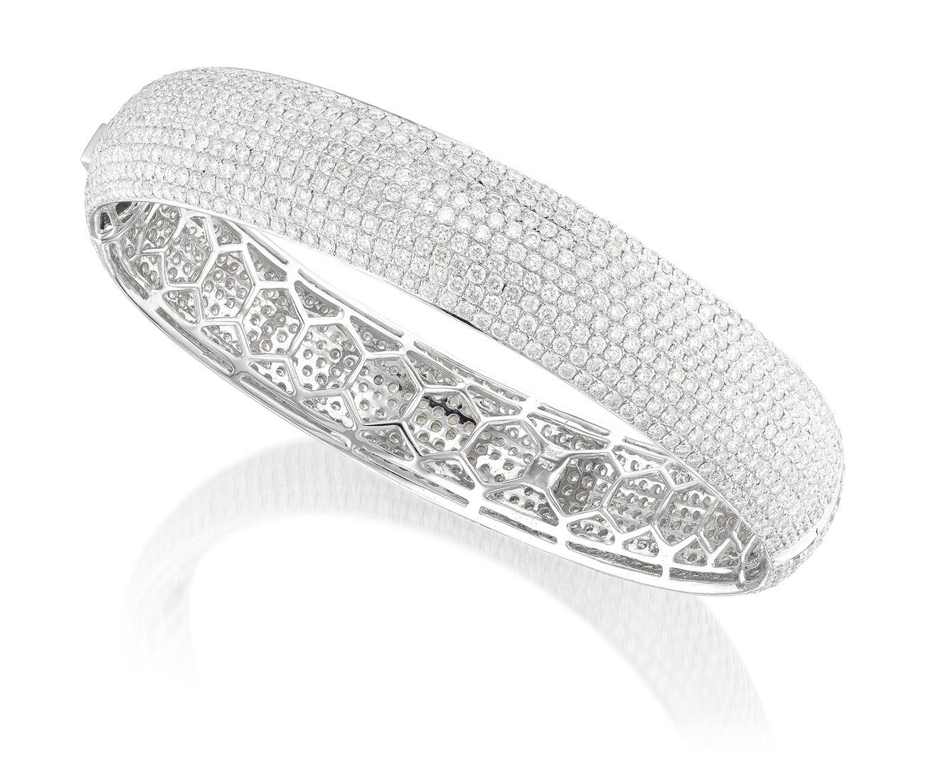 The hinged bangle pavé-set with brilliant-cut diamonds, mounted in white gold, inner circumference approximately 190 mm.