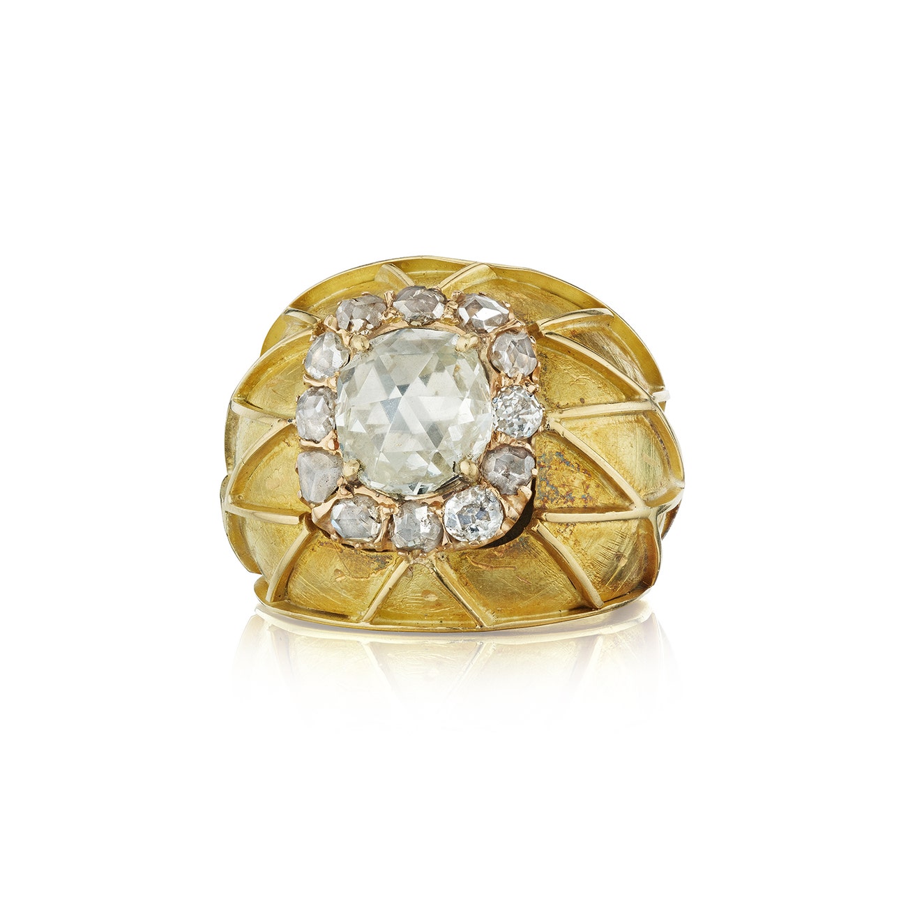 Set with a rose-cut diamond weighing approximately 1.98 carats, surrounded by rose-cut diamonds,