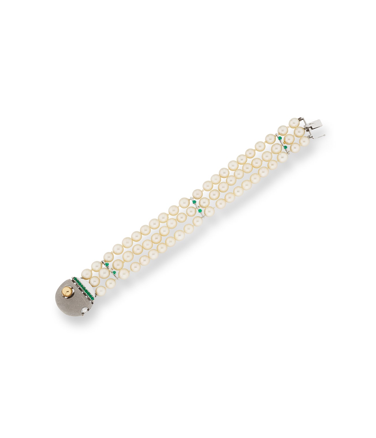 Cultured pearl, emerald and diamond bracelet