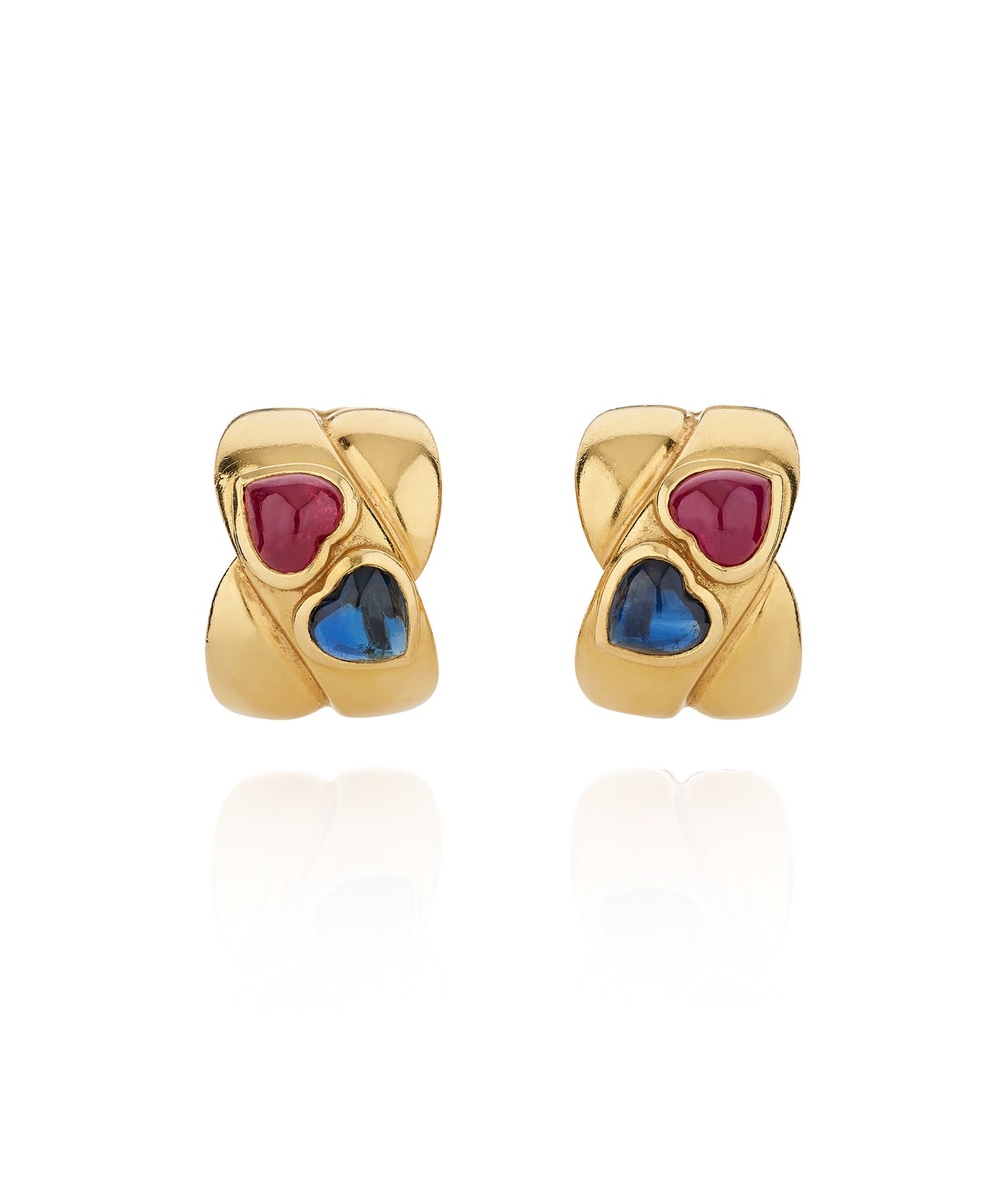 Each set with a cabochon, heart-shaped sapphire and ruby, measuring approximately 20 x 14mm.