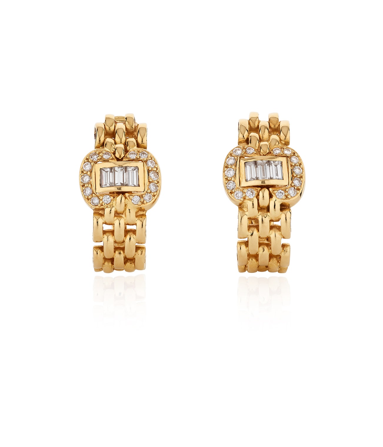 Of chain design, each set with baguette and brilliant-cut diamonds, measuring approximately 28 x 14mm.