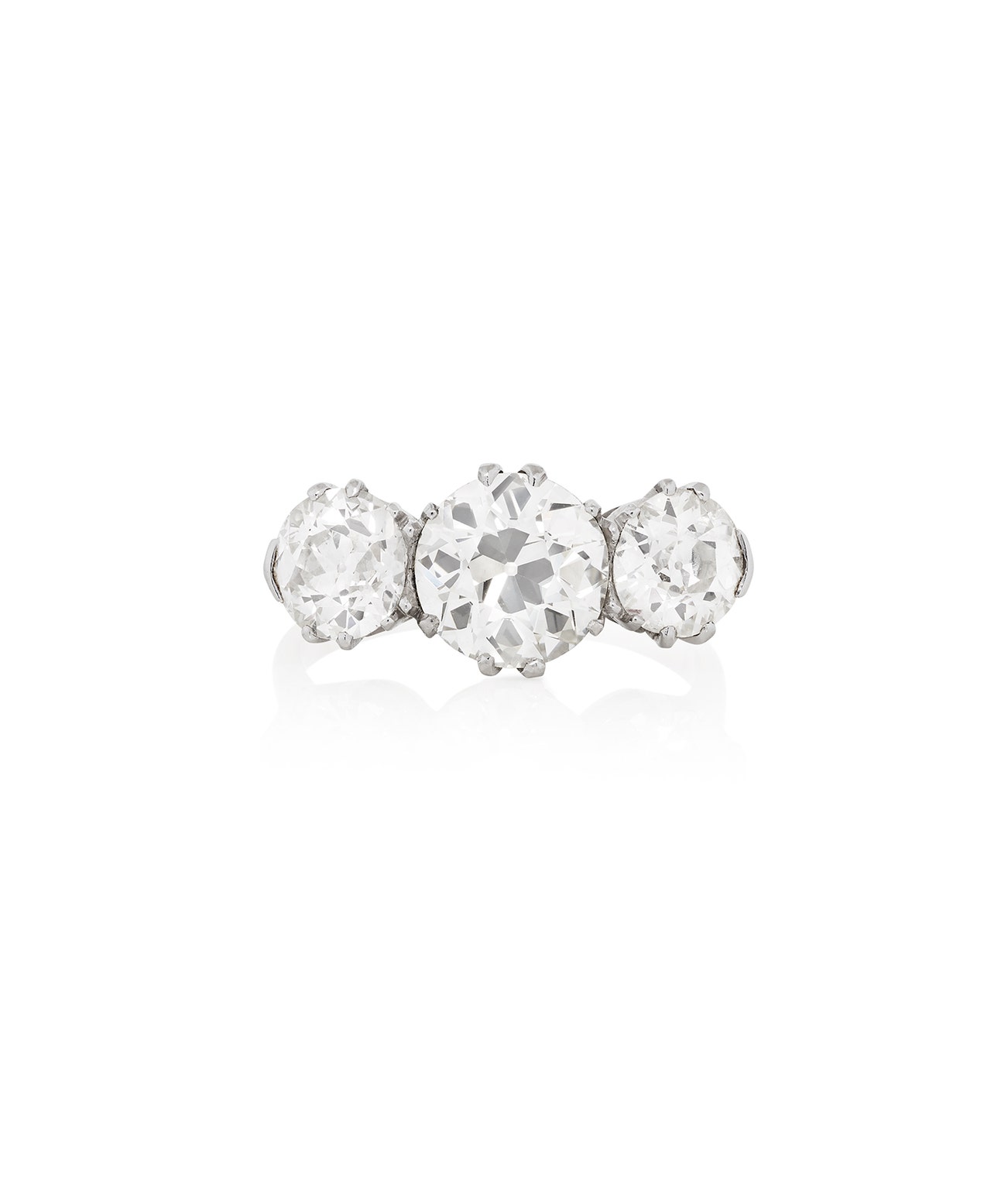 Set with a central circular-cut diamond weighing 1.55 carats, accented with two similarly-cut diamonds, size 49.