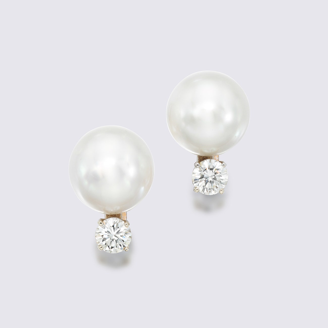 Pair of South Sea Cultured Pearl and Diamond Earclips