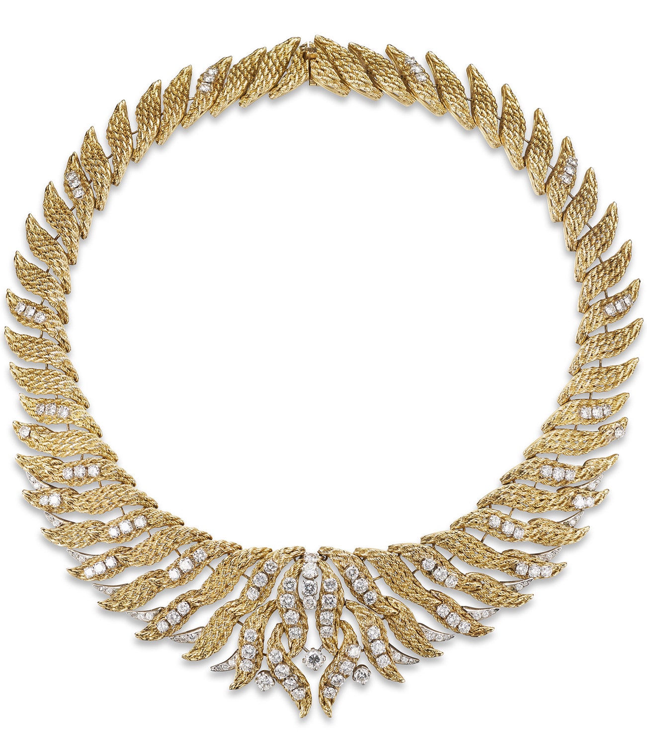 Designed as a cascade of fringed links, composed of tendrils set with brilliant-cut diamonds, length approximately 380mm, French maker's mark and assay marks for gold.