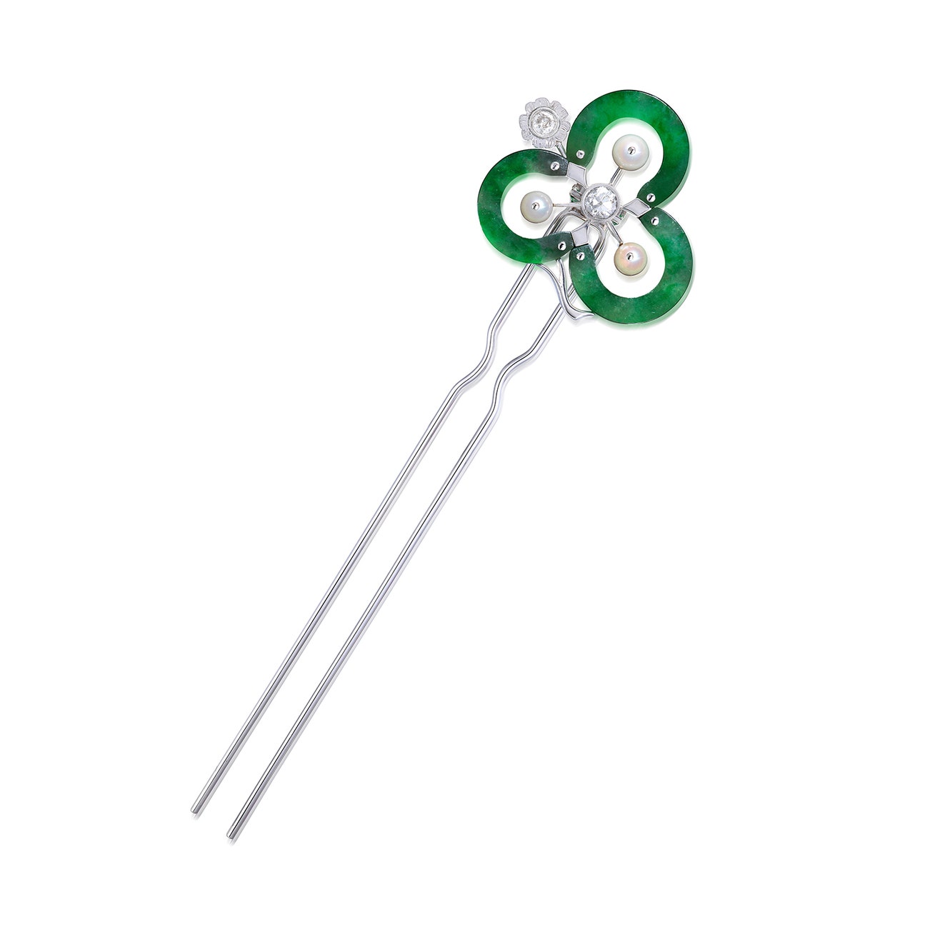 Jadeite, Diamond and Cultured Pearl Hair Pin