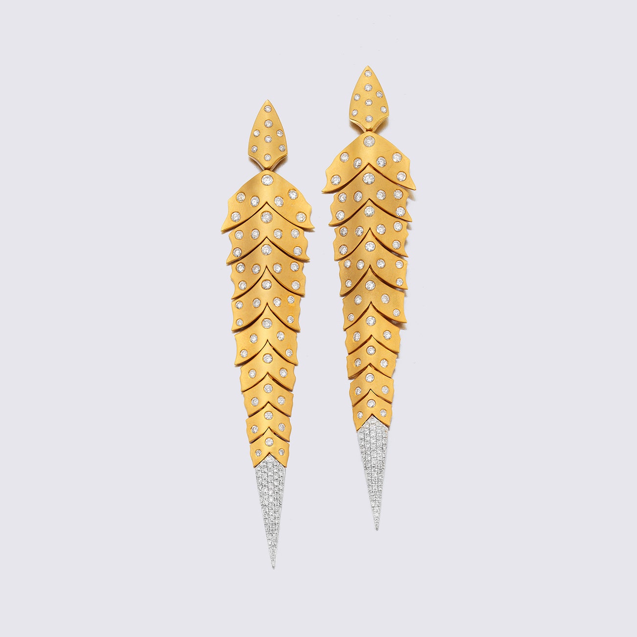 Designed with a leaf motif, each set with brilliant-cut diamonds,