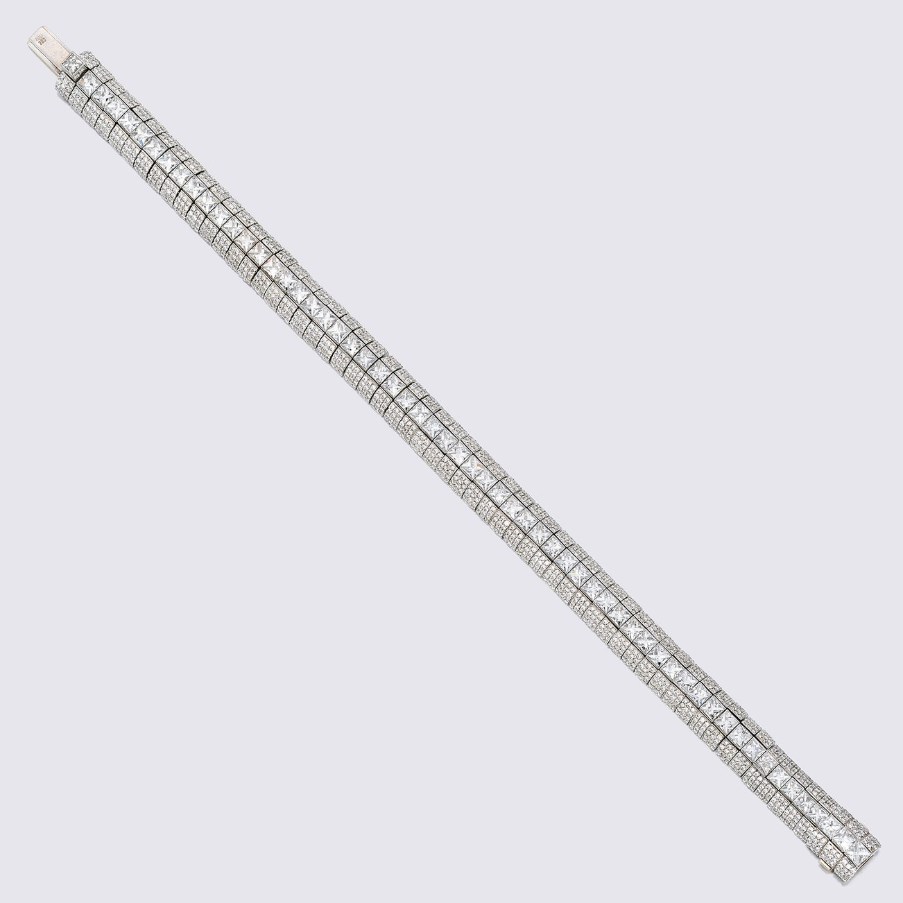 mounted in platinum and 18K white gold, length approximately 7 3/8 inches, with maker's mark.