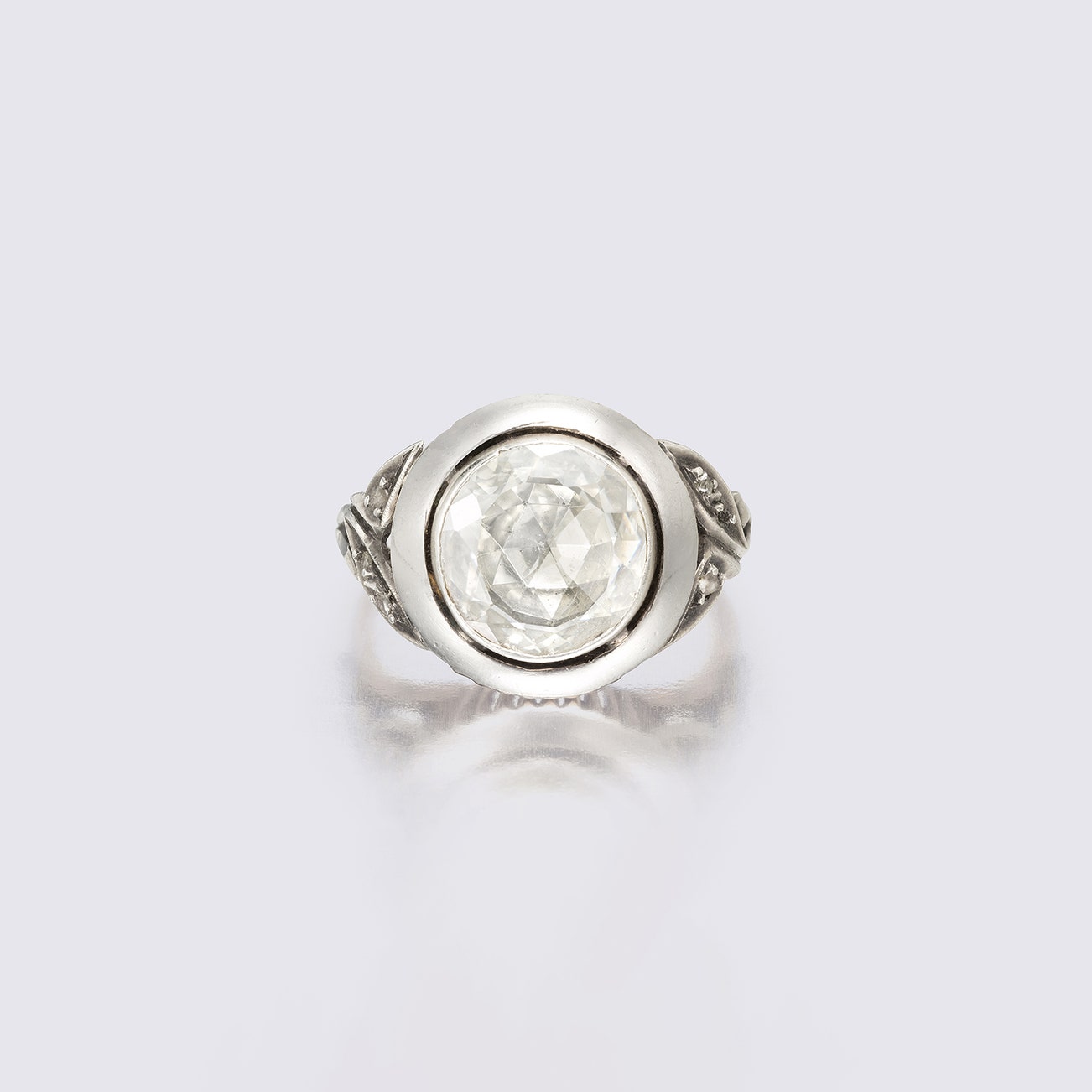 Set with a rose-cut diamond weighing approximately 3.65 carats,