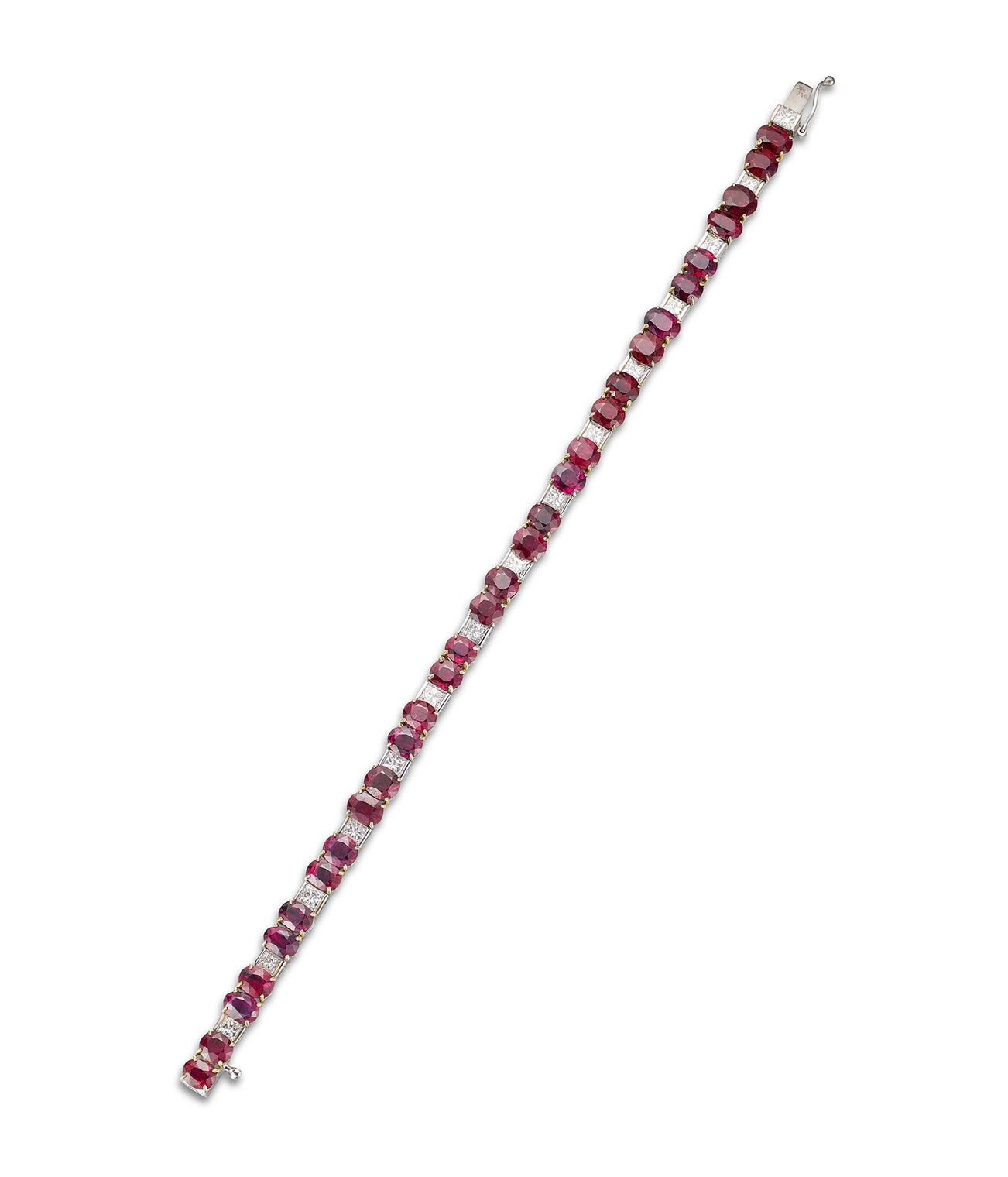 Set with oval rubies, alternating with princess-cut diamonds, length approximately 181mm.
