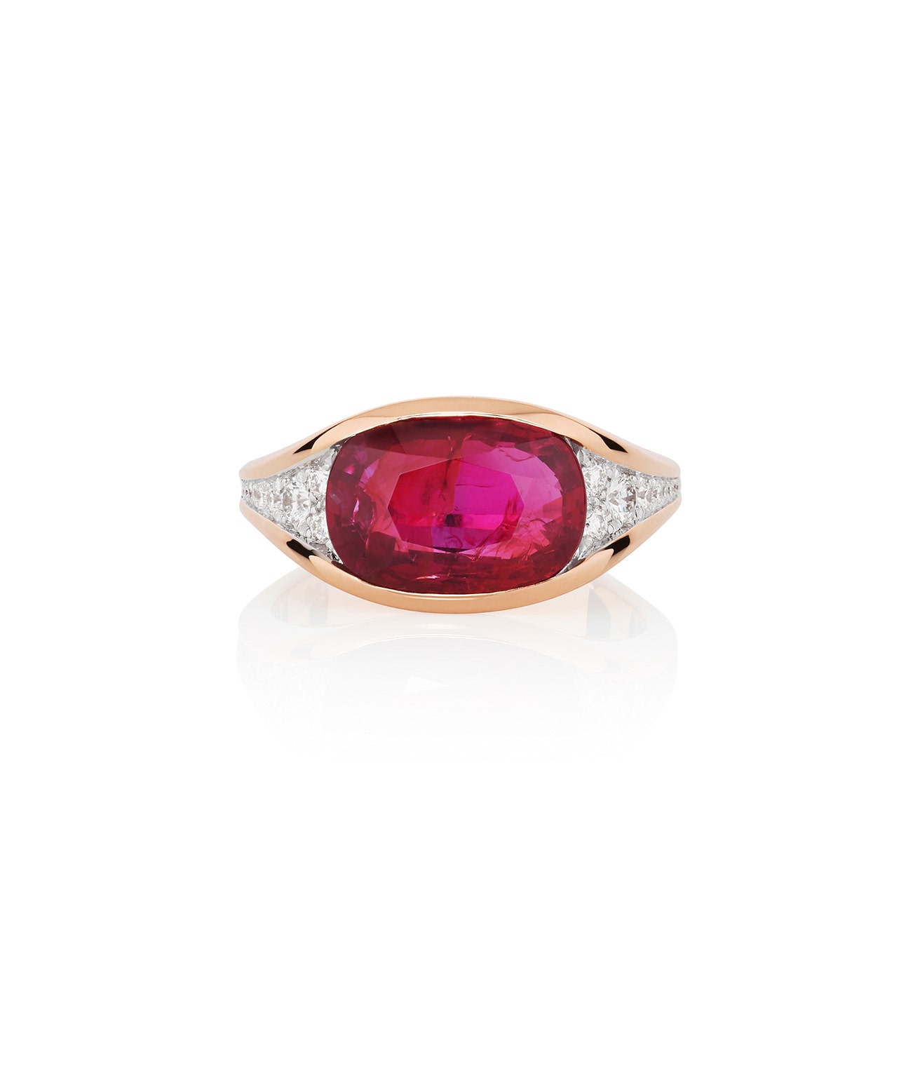 Set with an oval ruby weighing 3.62 carats, accented with brilliant-cut diamonds, size 53