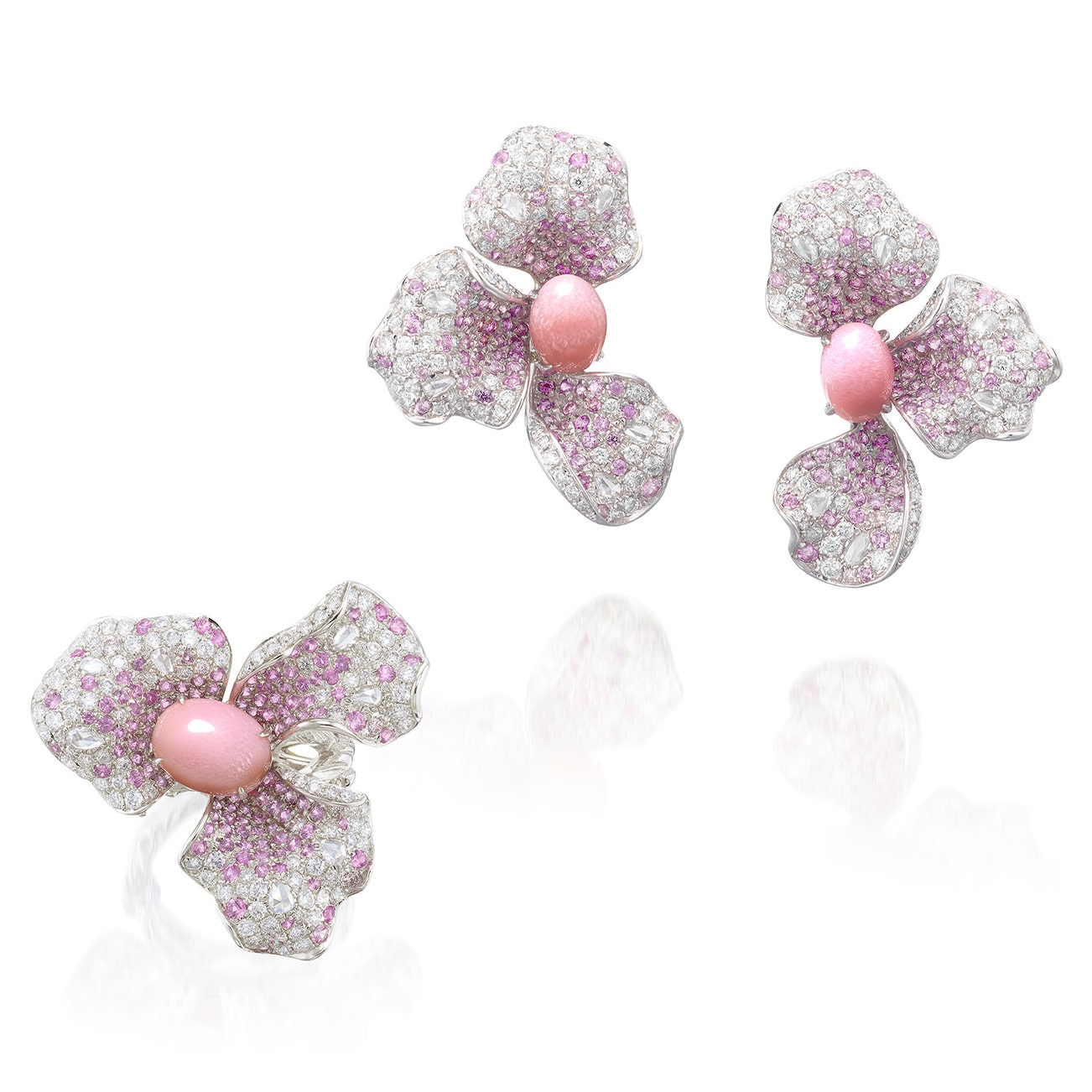 Conch Pearl, Pink Sapphire and Diamond Demi-Parure