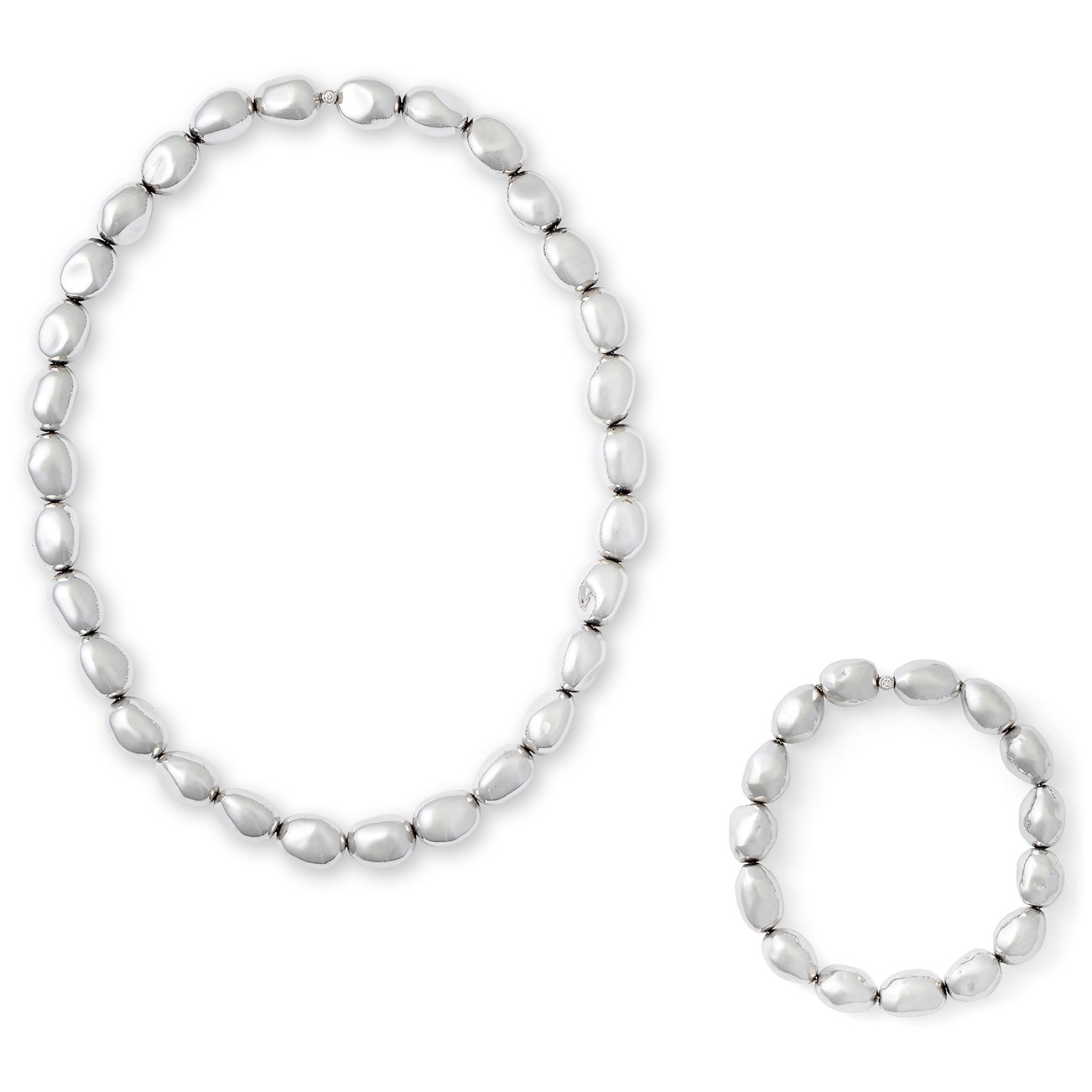 Comprising: a necklace composed of pebble-shaped beads, the clasp embellished with a collet-set brilliant-cut diamond, length approximately 360mm, and a bracelet, length approximately 180mm, the bracelet may be attached to the necklace, combined length approximately 540mm.