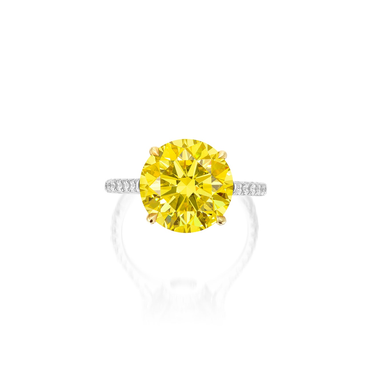 Fancy Vivid Yellow Diamond and Diamond Ring