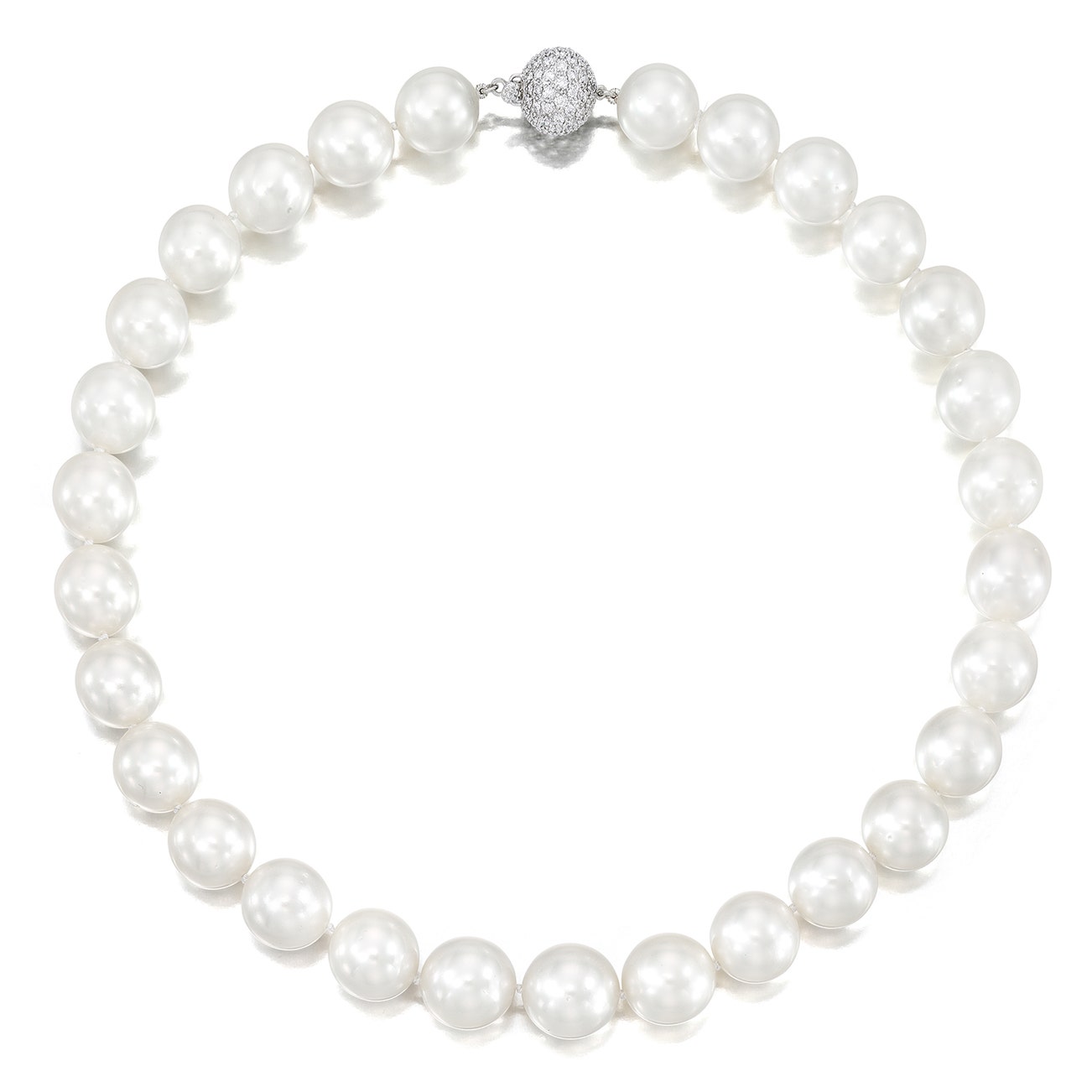 Composed of a graduated strand of cultured pearls, the clasp accented by brilliant-cut diamonds, mounted in 18K white gold, length approximately 17 inches.