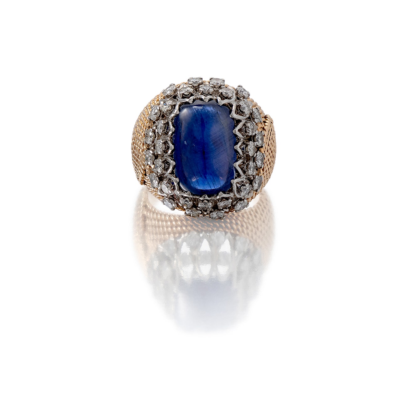 Set with a cabochon sapphire , accented with brilliant-cut diamonds,