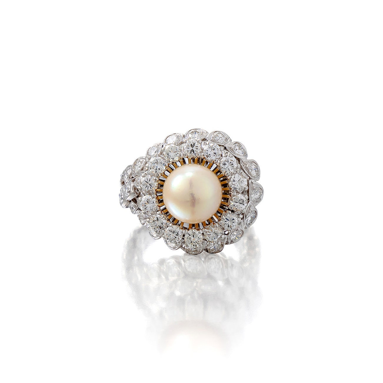 Cultured pearl and diamond ring