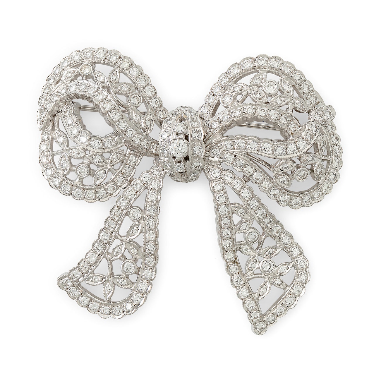 Modelled as a bow, set throughout with circular-cut diamonds,