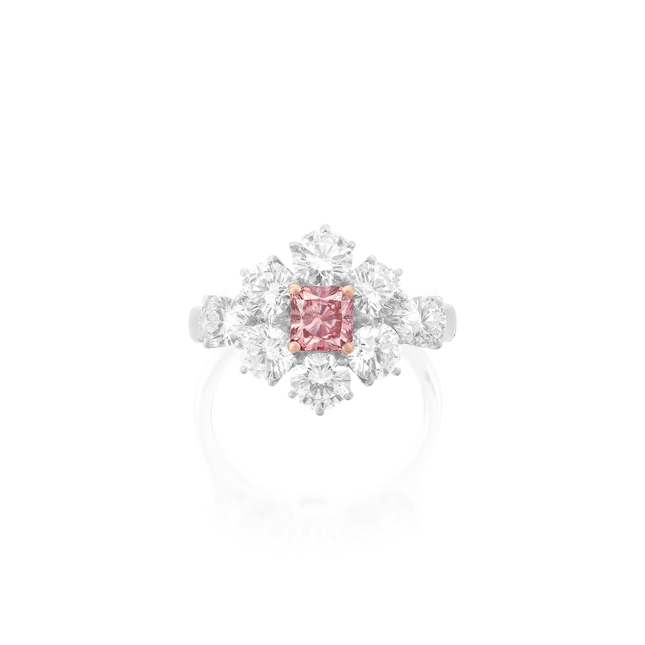 Fancy Intense Purplish Pink Diamond and Diamond Ring