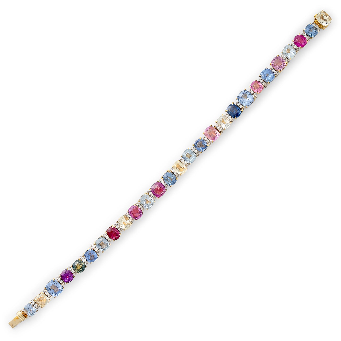 Set with oval and cushion-shaped sapphires and coloured sapphires, accented with brilliant-cut diamonds, length approximately 190mm.