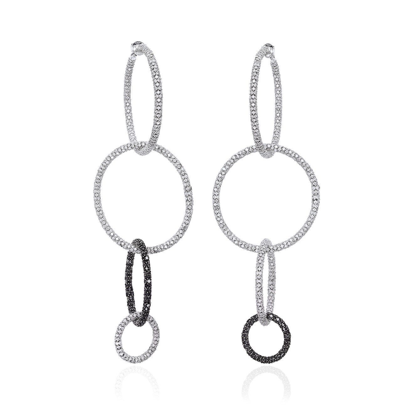 Of interchangeable hoop design, set with brilliant-cut diamonds, accented by brilliant-cut black diamonds, mounted in 18k white gold, length approximately 5 inches, maker's mark for Roberto Demeglio.
