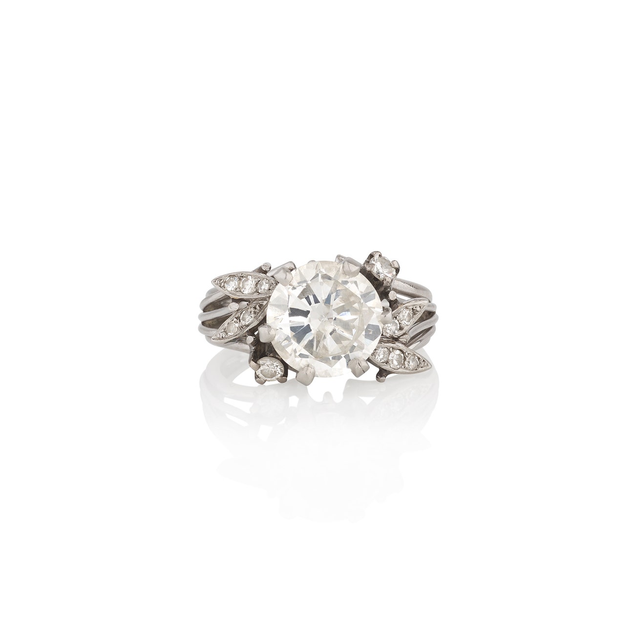 Set with a brilliant-cut diamond weighing 2.54 carats, accented with brilliant- and single-cut diamonds,
