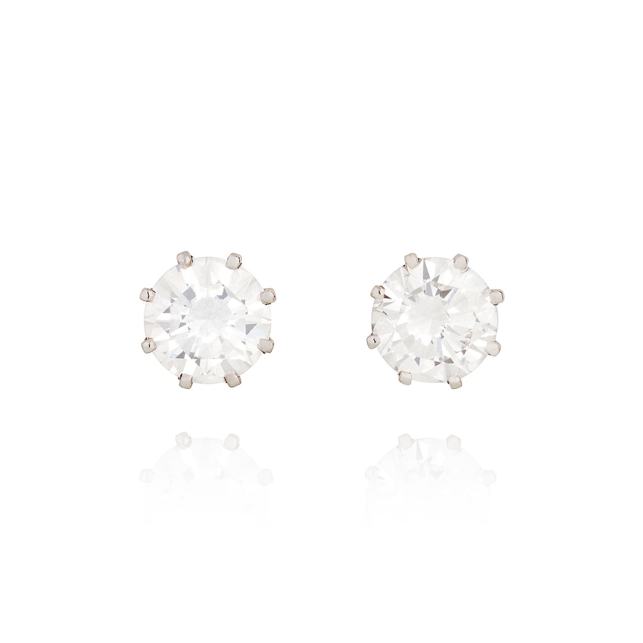 Each set with a brilliant-cut diamond weighing 0.86 carats and 0.88 carats respectively, post and butterfly fittings.