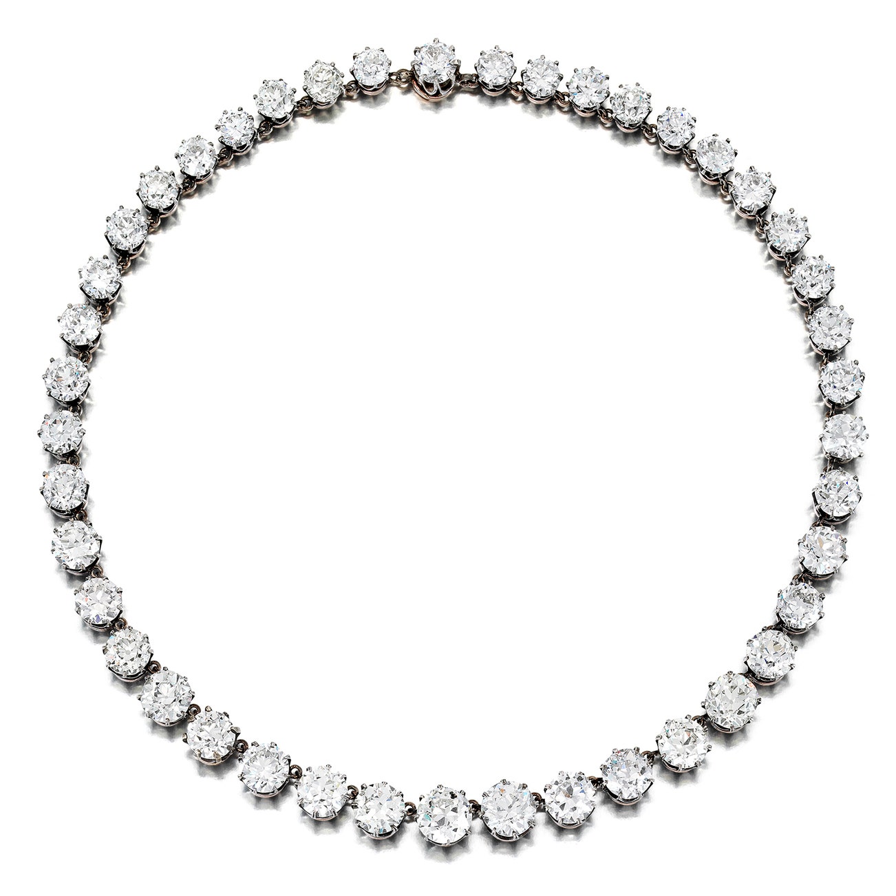 mounted in silver-topped gold, length approximately 14 inches, with French assay marks for gold.