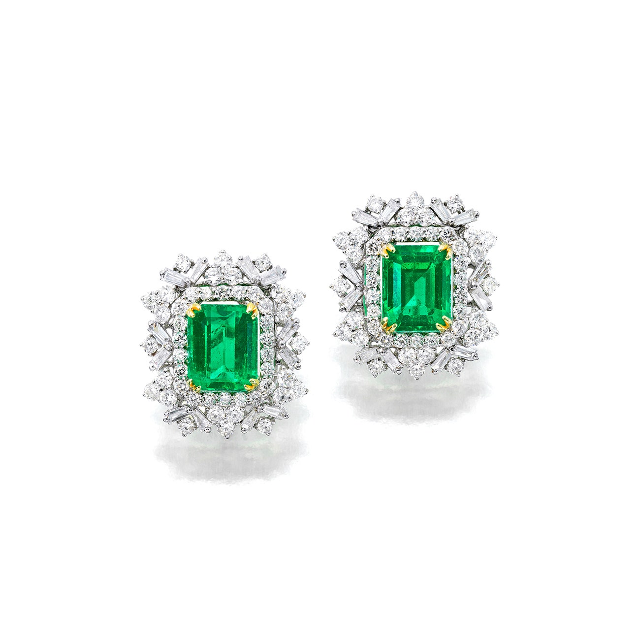 Accompanied by Gübelin report no. 23121177, stating that the emerald weighing 2.46cts is of Colombian origin, with no indications of clarity enhancement, and no. 23121178, stating that the emerald weighing 2.63cts is of Colombian origin, with no indications of clarity enhancement; together with an additional gemological report.