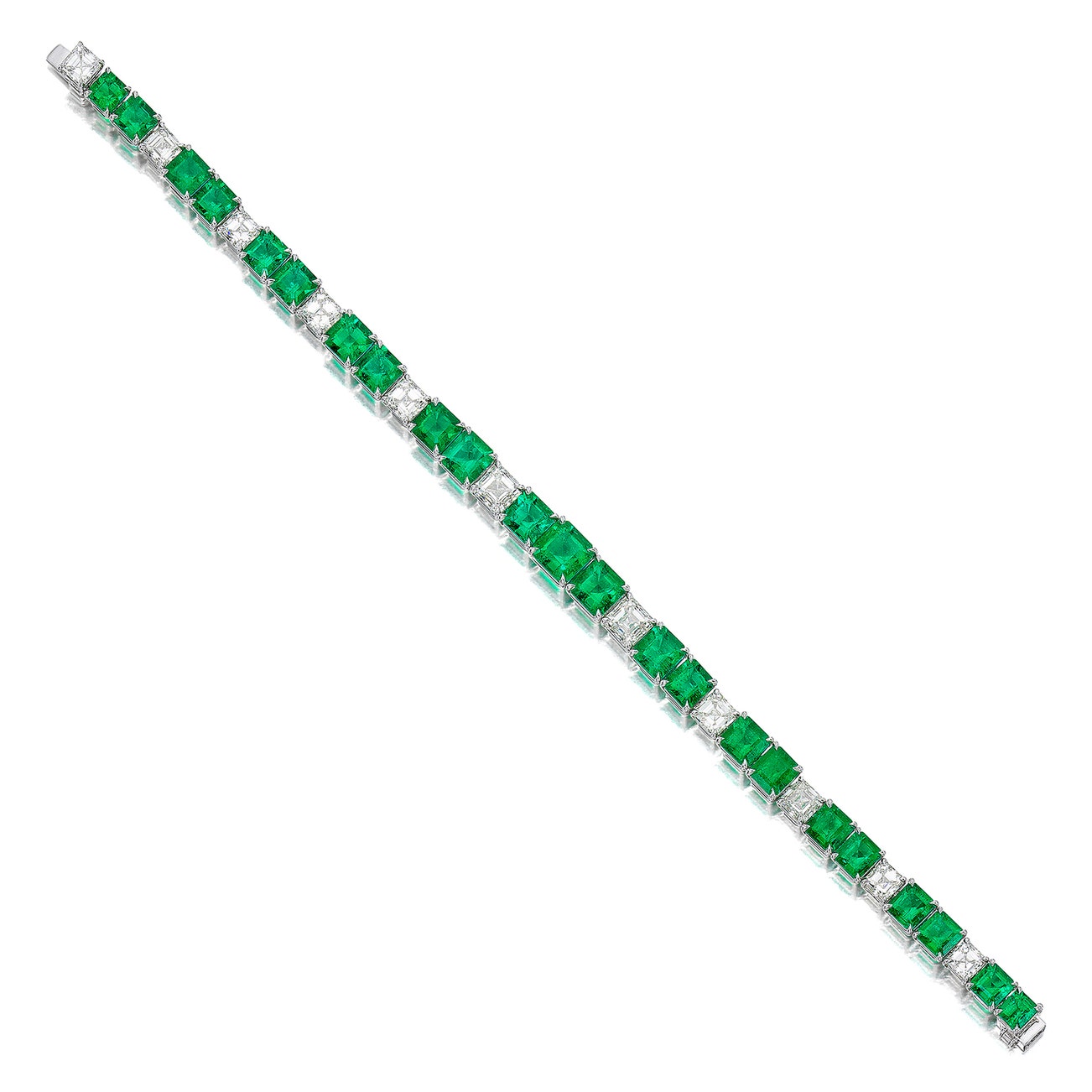 Composed of a graduated line of square-shaped emeralds and step-cut diamonds,