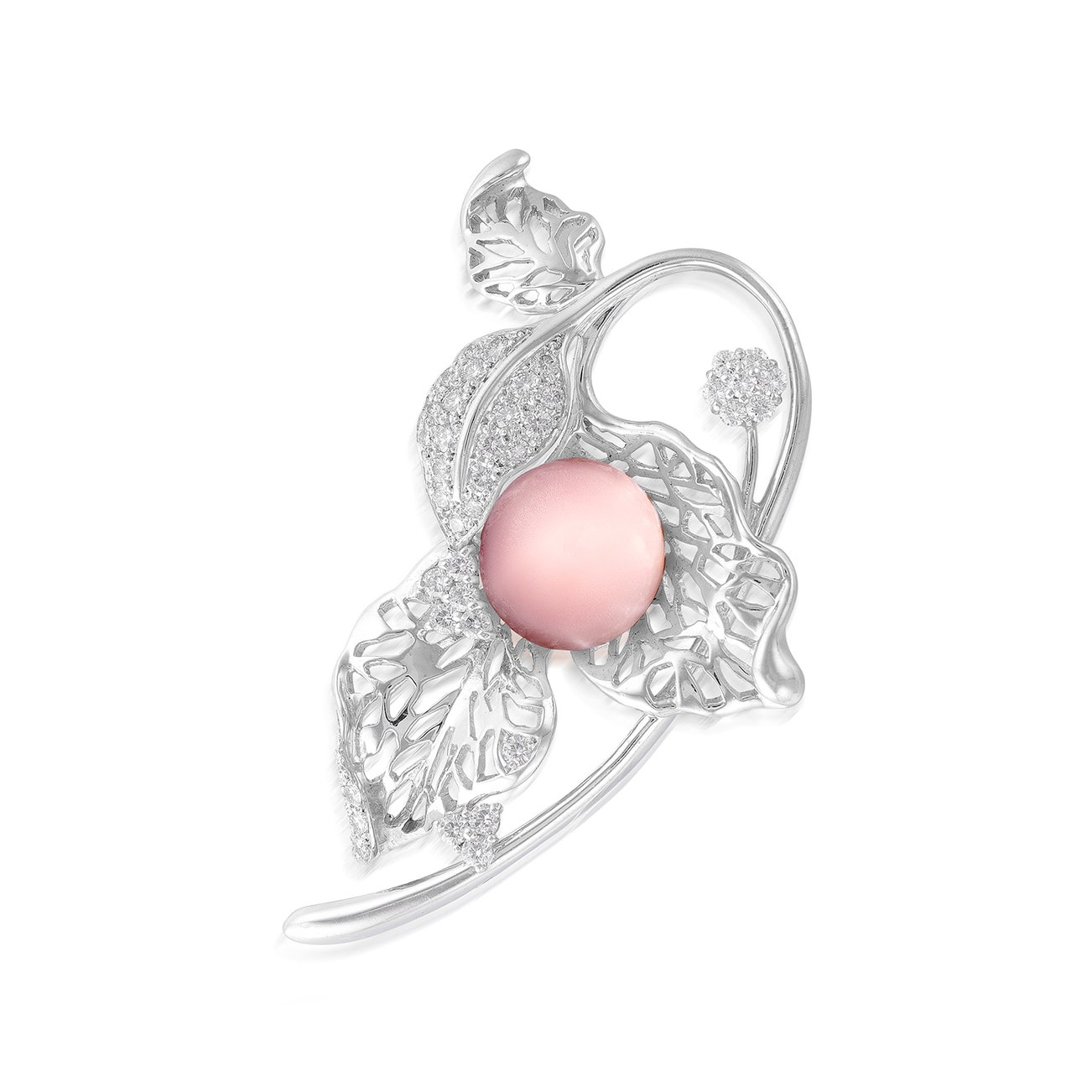 Conch Pearl and Diamond Brooch