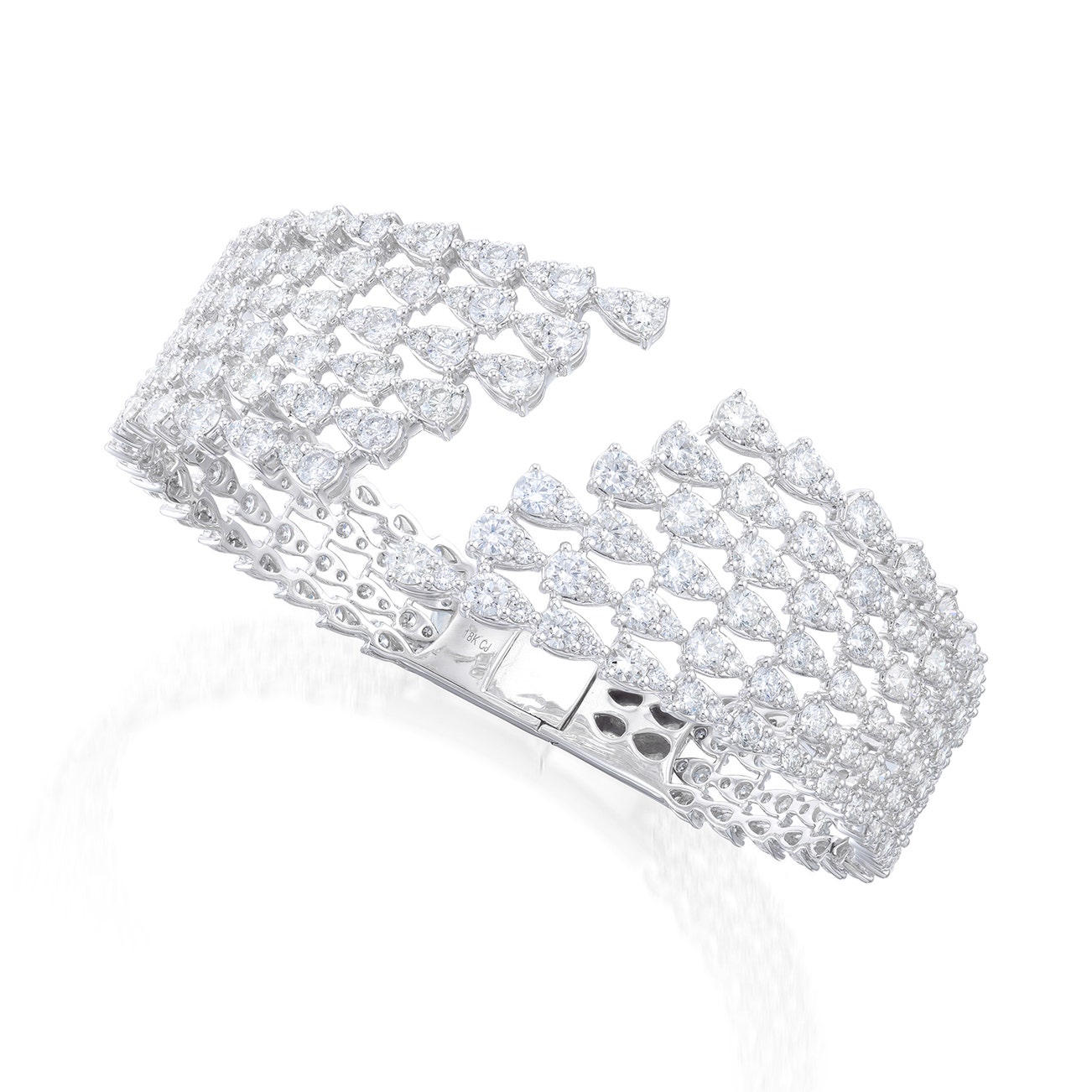 The tapered hinged band designed as rows of brilliant-cut diamonds,