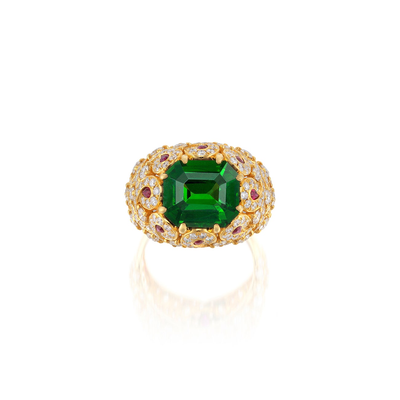 Tsavorite Garnet, Ruby and Diamond Ring