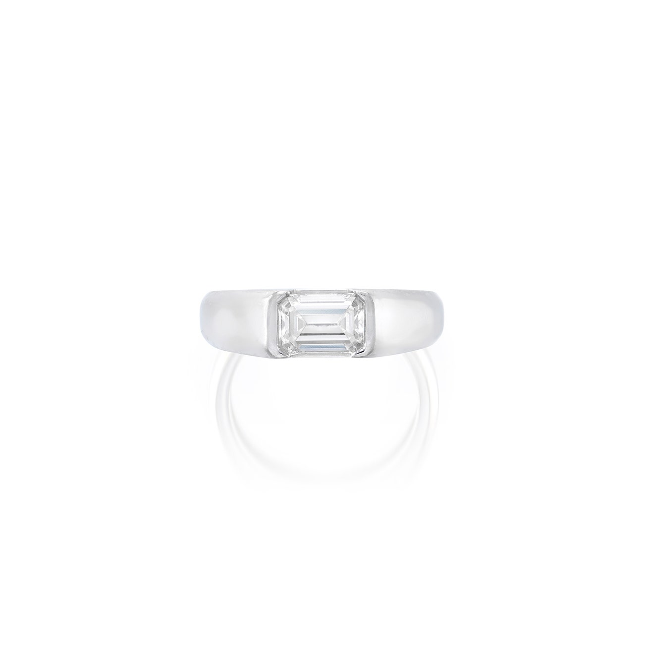 Set with an emerald-cut diamond weighing 1.88 carats, mounted in platinum, size 9 ¾.