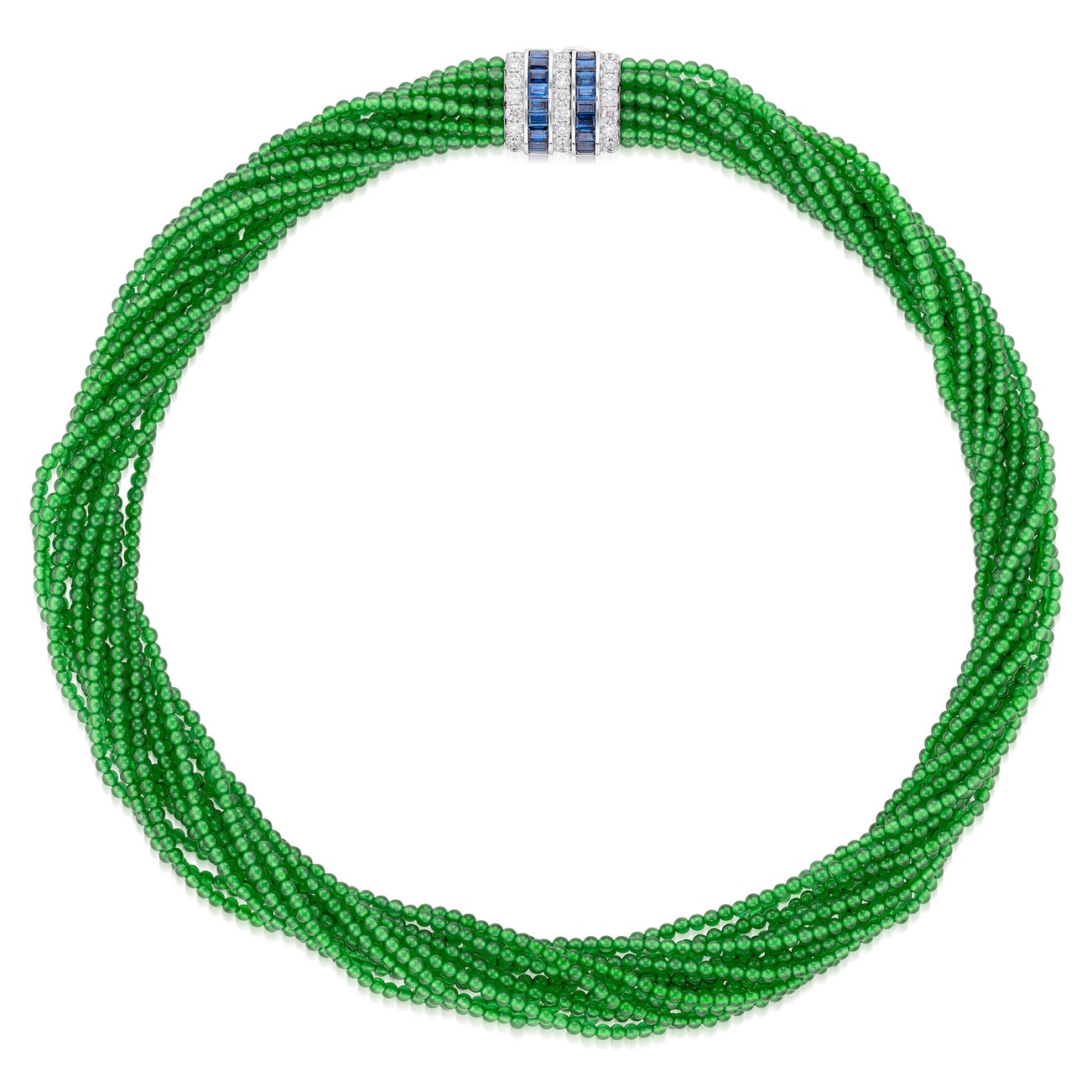 Jadeite, Sapphire and Diamond Torsade Necklace