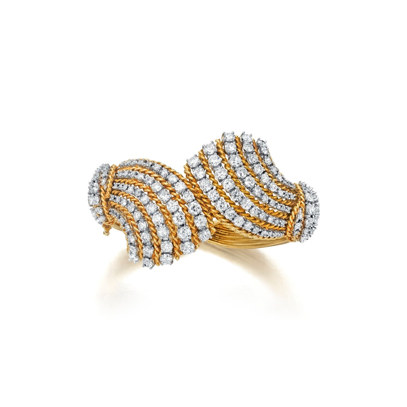 mounted in 14k yellow gold, maker's mark, inner circumference approximately 6 inches.