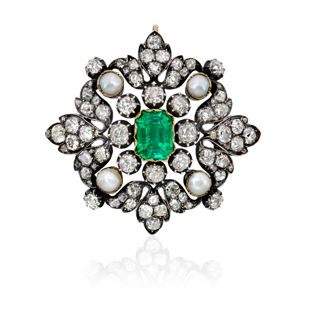 Antique Emerald, Diamond and Pearl Pendant, 19th Century