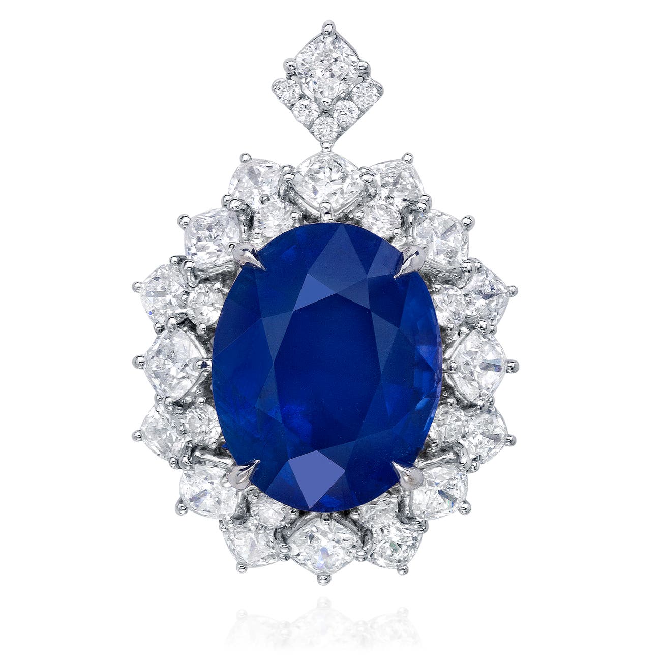 The pendant set with an oval sapphire weighing 21.12 carats, accented by cushion-shaped and brilliant-cut diamonds, transformable into a ring, mounted in 18k white gold, pendant measuring approximately 1 x 7/8 inches, ring size 7.